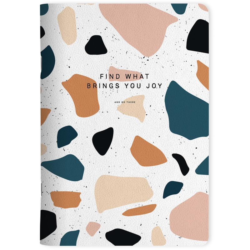 Тетрадь общая школьная Be Smart "Terrazzo" А5 формата (150х210 мм) на скрепке не только станет незаменимым помощником в записи лекций или уроков, но и будет отражать твою индивидуальность! Обложка из мягкого, но прочного картона плотностью 205 г/кв.м с печатью цветного принта с внутренней стороны имеет приятную ламинацию, которая делает изделие прочнее и долговечнее. А скругленные уголки позволят мягкой обложке дольше сохранять первозданный вид. Внутренний блок в клетку со скругленными уголками на 48 листов (96 страниц) из высококачественной бумаги белизной 100% и плотностью 65 г/кв.м имеет титульный лист.