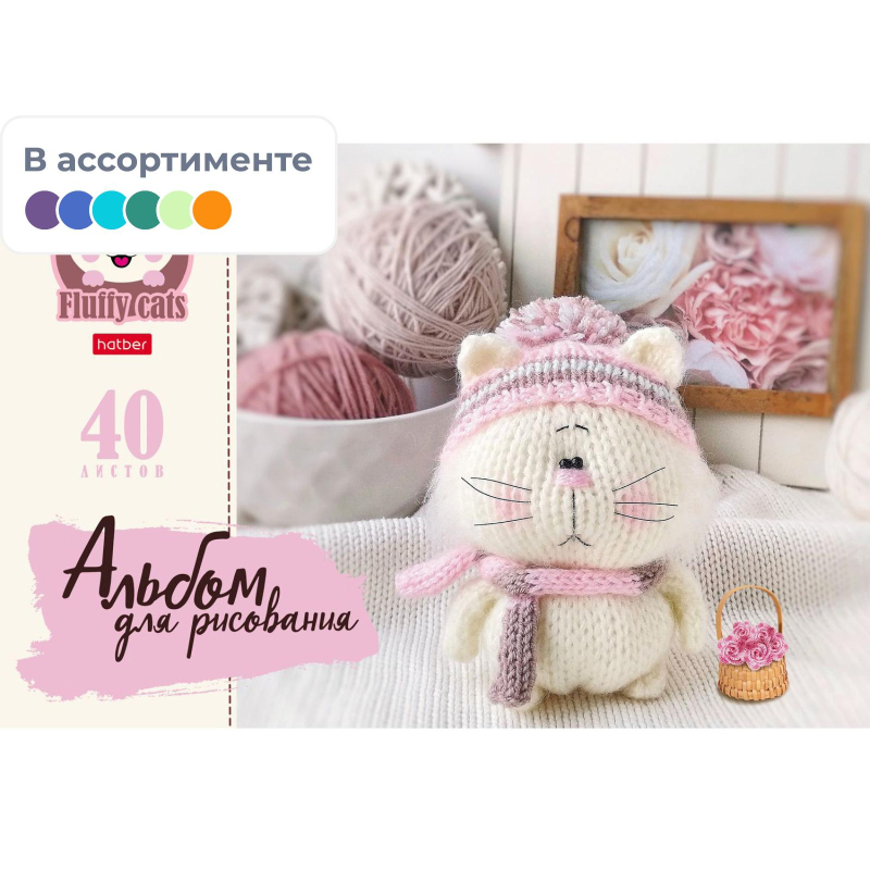 Альбом для рисования А4,40л,скрепка,Уютные котики,5диз,074749