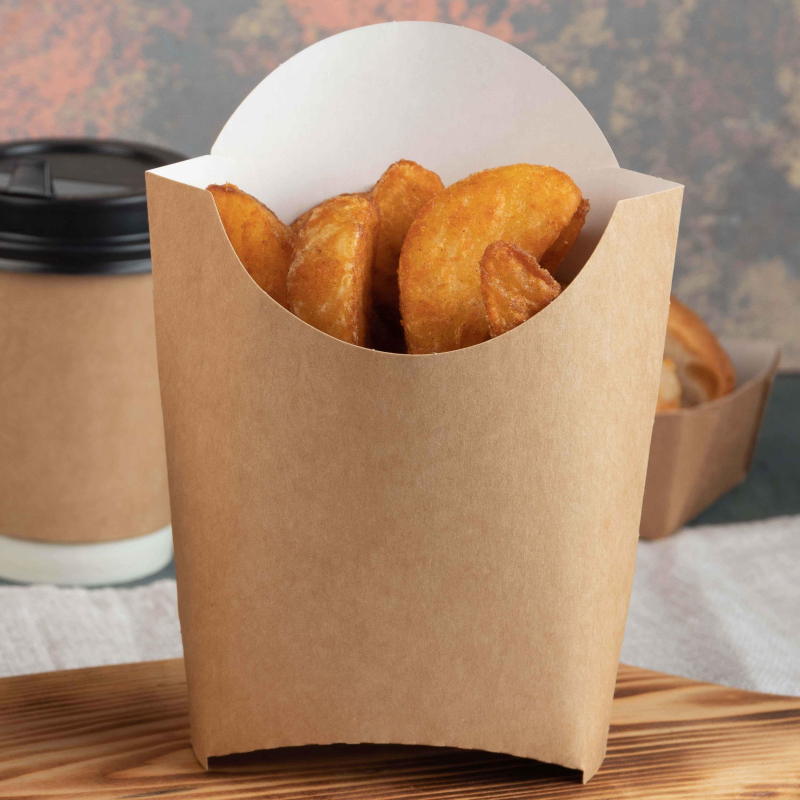Упаковка из картона - современный и экологичный вид упаковки. Идеально подходит для картофеля фри. Имеет привлекательный дизайн, хорошо держит форму (не деформируется). Одноразовая картонная упаковка может использоваться в заведениях HoReCa, кейтеринге, кулинарии, еда навынос, доставке, фастфуде. Подходит для жирной пищи. Размер: 120х50х130 мм. В упаковке 400 штук.