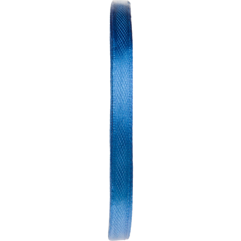 Атласная лента синяя, гладкая и приятная на ощупь. Используйте ее для отделки изделий, украшения подарков, в свадебном оформлении, а также в скрапбукинге и канзаши. Изготовлена из полиэстера. Размер: 6 мм x 22,5 м.