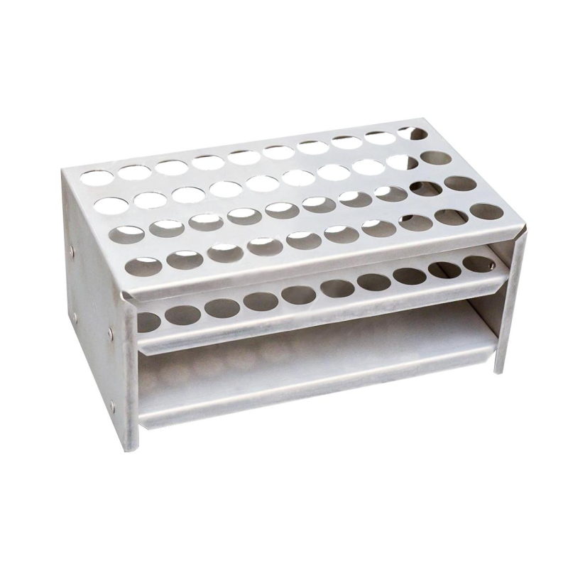 Штатив изготовлен из алюминия, что позволяет стерилизовать их при любом температурном режиме; данный материал обеспечивает легкость и долговечность. Добавлена дополнительная полка, предотвращающая перекос пробирок при их установке. Используется в водяных банях и не только. Штатив имеет персональную упаковку. Предназначен для хранения пробирок. Размеры - 210x125x94 мм. Количество гнезд - 40 шт. Диаметр гнезда - 18-1 мм. Материал - алюминий.