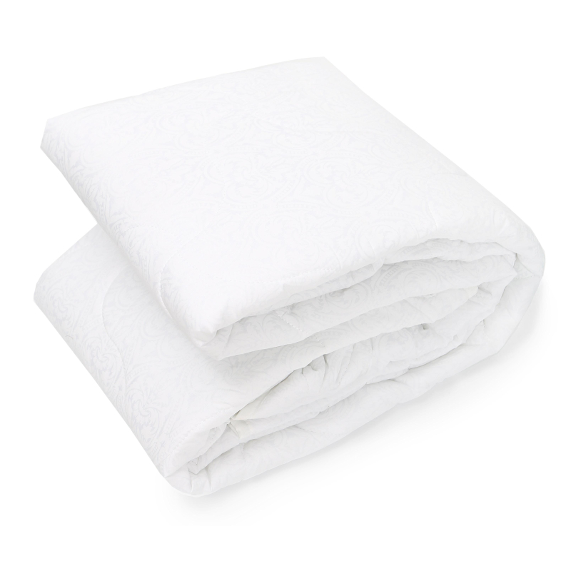 Одеяло 140х205 см полиэфирное волокно-бамбуковое волокно/полиэстер стеганное. Всесезонное стеганое одеяло выполнено из плотного гладкого полиэстера ажур белого цвета с современным наполнителем из искусственного бамбукового волокна. Привлекательные узоры на белом полотне делают материю особенно роскошной и аристократической. Материал изготовлен из специального вида полиэстера, достаточно практичен и устойчив к внешним воздействиям. Поверхность белого ажура практически не пачкается и способна на долгое время сохранять новизну при правильном уходе. Ткань обладает рядом достоинств, таких как гипоаллергенность, терморегуляция. При внешних физических нагрузках не теряет ценность, не покрывается катышками и затяжками. За таким материалом легко ухаживать в домашних условиях с помощью традиционных средств для очистки. В стежке чехла используется наполнитель - пласт волокна на основе бамбука (термоскрепленное силиконизированное волокно с добавлением вискозы, полученной из бамбуковой древесины). Натуральная, экологически чистая основа бамбукового волокна, используемая в наполнителе одеяла, обладает природными антибактериальными и дезодорирующими свойствами, останавливает рост и развитие бактерий, прекрасно пропускает воздух и не задерживает влагу. Размер изделия: 140х205 см. Наполнитель: искусственное бамбуковое волокно (30% бамбуковое волокно, 70% полиэфирное волокно), 150 г/кв.м. Чехол: полиэстер ажур (100% полиэстер). Цвет: белый. Вес изделия: 850 г. Упаковка: сумка - пакет ПВХ с ручкой.