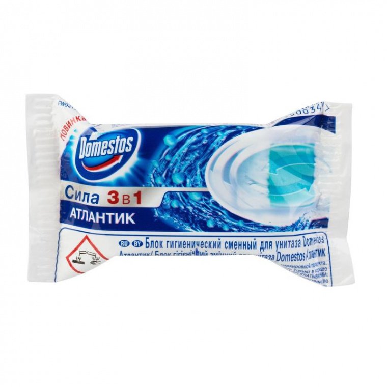 Блок гигиенический для унитаза Domestos — три действия, которые объединились в одном эффективном средстве для поддержания чистоты, блеска и приятного аромата в вашем туалете.