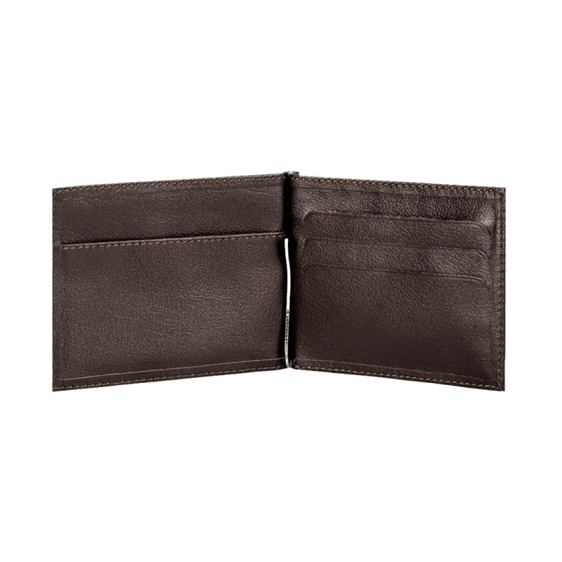 Зажим для купюр Fabula из натуральной кожи коричневого цвета (Z.9.LG.). На внутреннем развороте: металлическая фурнитура для купюр на пружине, 3 кармана для кредитных карт, дополнительный глубокий карман. На внешней (оборотной) стороне карман для мелочи, закрывающийся на молнию. Внешний размер: 120х86х7. Упаковка: подарочная коробка.