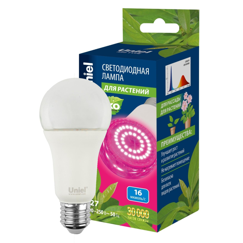 Фитолампа Uniel Led-A60-15W/Spsb/E27/Cl Plp30wh 15Вт. Досветка для ускорения роста рассады и стимулирования цветения.Внешний вид и/или характеристики товара могут быть изменены производителем в соответствии с производственным процессом.