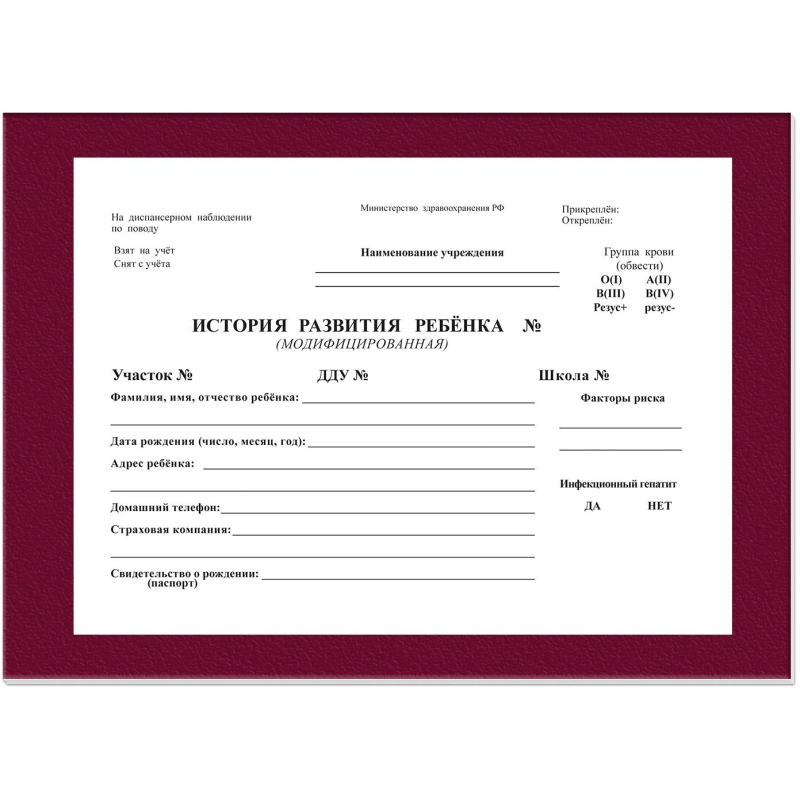 Карта медицинская история развития ребенка,А5,196л,бумв,красн,ф.112
