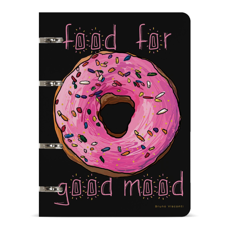 Оригинальный дизайн тетради на кольцах со сменным блоком серии "Сладкое Настроение. Донат" не оставит равнодушным представителей молодого поколения. Тетрадь прекрасно подойдет для занятий в колледжах и ВУЗах. Гибкая износостойкая обложка прекрасно защищает блок от быстрого износа при активном, длительной использовании тетради. Кольцевой механизм дает возможность изменять количество листов в блоке и их порядок. Блок изготовлен из белой офсетной бумаги плотностью 70 г/кв.м. Линовка блока в точку позволяет использовать тетрадь для записей технической и гуманитарной направленности. Тетрадь имеет титульный лист, дизайн которого разработан в соответствии с дизайном обложки, специальная линовка позволяет аккуратно и четко подписать тетрадь.