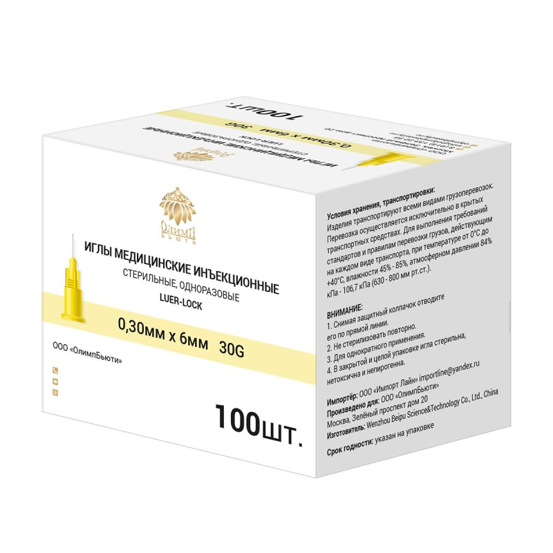 Игла для мезотерапии ОлимпБьюти 30G (0.3 x 6 мм, 100 штук в упаковке). Предназначена для микроинъекций, биоревитализации лица и тела. Острие иглы имеет трехгранную заточку. Каждая грань трижды шлифуется ультразвуком. Игла трижды покрывается силиконом. Благодаря такой технологии, игла входит в ткань не разрезая, а раздвигая волокна. Силиконовое покрытие делает ее продвижение плавным и безболезненным. Канюля иглы подходит для всех шприцов с типом крепления луер или луер лок. Цвет канюли соответствует размеру иглы по международным стандартам. Каждая игла индивидуально упакована в блистер. Внутренняя упаковка 100 штук. Транспортная упаковка 10000 штук. Срок годности 5 лет.