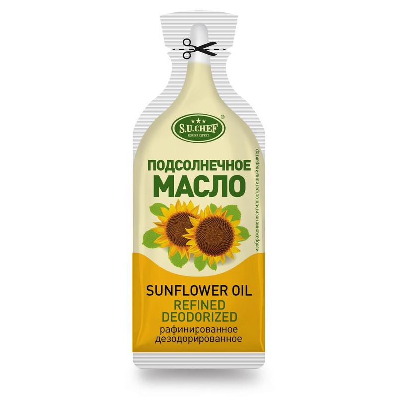 Масло подсолнечное S.U.Chef рафинированное (162 штуки по 10 г). Состав: масло подсолнечное рафинированное дезодорированное фасованное. Первый сорт. Пищевая ценность: жиры - 99,9 г. Энергетическая ценность 100 г продукта: 3700 кДж, 900 ккал. Срок годности: 12 месяцев. Хранить в крытых, затемненных помещениях. После вскрытия упаковки продукт хранению не подлежит. Страна производства: Россия.