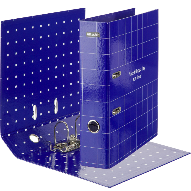Папка-регистратор Attache Comfort, изготовлена из плотного картона, покрытого ламинированной бумагой синего цвета. Формат папки-регистратора А4, ориентирован вертикально. Папка вмещает до 480 листов стандартной плотности.