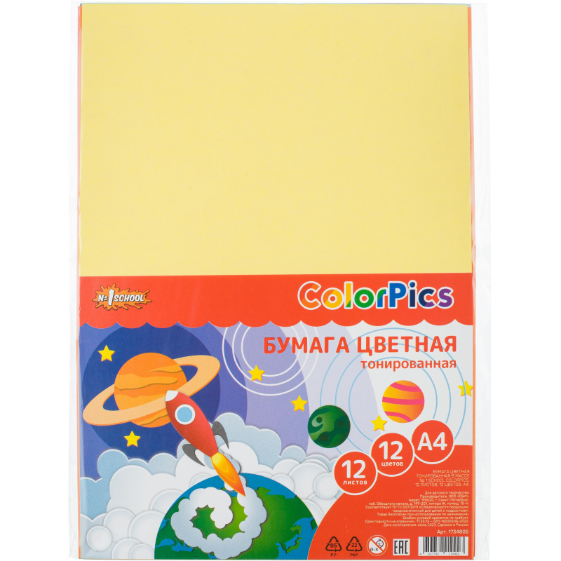 Цветная бумага офсетная, двусторонняя, тонированная в наборе (12 листов 12 цветов), упакованная в пакете. Можно использовать для поделок, аппликаций. Прокрашенная в массе тонированная бумага сохраняет цвет на сгибе, благодаря чему она отлично подойдет для оригами. В наборе листы размером 210x297 мм, плотность - 80 г/кв.м. Цвета в наборе: бежевый, сиреневый, оранжевый, розовый, лиловый, красный интенсивный, желтый пастельный, зеленый пастельный, голубой пастельный, зеленый интенсивный, желтый интенсивный, голубой интенсивный.