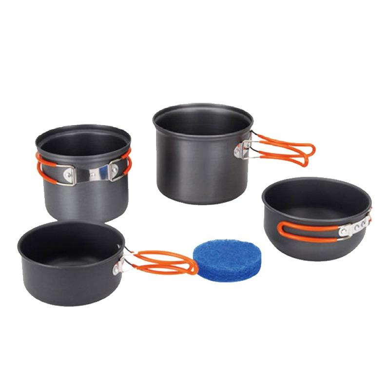 Набор туристических котелков Tramp TRC-075. Антипригарное покрытие. В посуде из анодированного алюминия пища готовится быстрее, прогревается равномерно, не пригорает. Электролитическим способом на металл наносится защитный слой. Материал становится прочным, долговечным, ему не страшны механические повреждения, абразивы, щелочные, кислые продукты. Поверхность остается гладкой, ее легко мыть. Набор посуды отлично подойдет для отдыха на природе, можно взять с собой весь набор или только необходимые предметы, а остальное оставить дома. Ручки кастрюль и сковородки компактно складываются. На ручках - изоляция. Крышки специальной формы, вровень с краем кастрюли, набор очень компактно складывается В комплекте: -котелок 1,3 л со складными ручками и крышкой сковородой -котелок 0,9 л со складными ручками и крышкой сковородой -губка для мытья посуды Предметов в наборе - 5