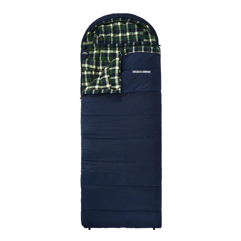 Спальный мешок Chelsea XL Comfort 70395-R -12 200 см синий. Очень теплый просторный трехсезонный спальник-одеяло Trek Planet Chelsea XL Comfort, шириной 100 см, предназначен для кемпинга в холодные дни весенне-осеннего периода с низкими температурами. В качестве внутреннего материала используется мягкая и приятная на ощупь фланель с хорошими гигиеническими и гипоаллергенными свойствами. Большой и удобный капюшон обеспечивает повышенный комфорт во время сна. Чтобы лицо не касалось синтетической ткани, на спальнике предусмотрена манжета из мягкой фланели. В специальный карман внутри капюшона можно положить мягкую одежду, и получится отличная подушка! Для удобства использования у спальника две молнии с боковой и торцевой стороны. Короткую молнию в ногах можно расстегнуть для создания вентиляции, если становится жарко. Вдоль обеих молний расположен термоклапан для уменьшения тепловых потерь. Спальники с левой и правой молнией можно состегнуть, получив один большой и очень теплый спальник для двоих. Особенности: Конструкция капюшона и спальника анатомической формы. Небольшой вес. Удобный глубокий капюшон. Внешний материал: усиленный полиэстер 210T RipStop WR. Водоотталкивающая пропитка внешнего материала WR. Внутренняя ткань: дышащий и мягкий полиэстер 210T Cire. 7-канальный утеплитель Hollowfiber. Молния имеет два замка с обеих сторон. Защита от заедания молнии. Тепловой ворот. Термоклапан вдоль молнии. Внутренний карман. Возможность состегивания спальников между собой. Компрессионный чехол из прочного материала Oxford. Материал внешней стороны: полиэстер. Вес: 3100. Размер 200x100 см.