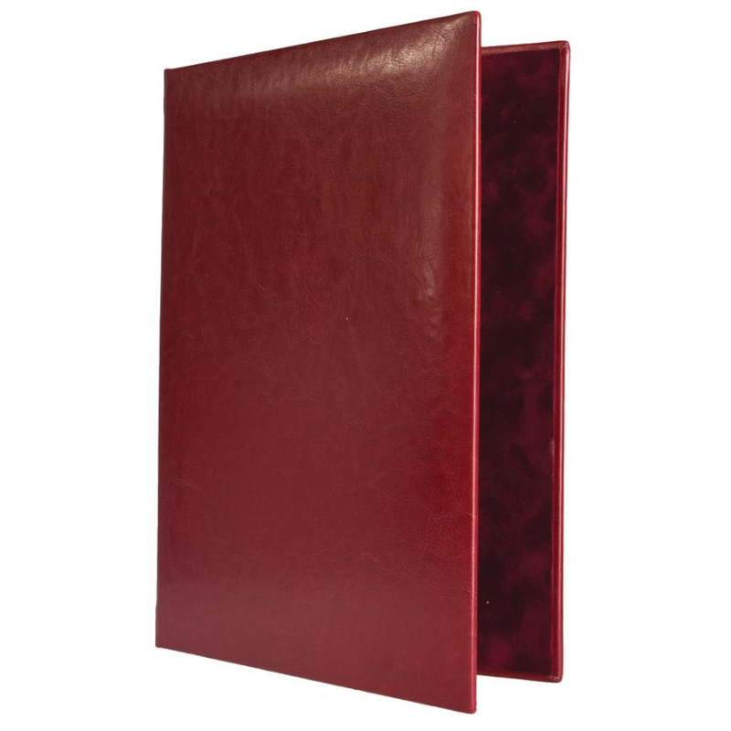 Адресная папка формата А4 выполнена из рециклированной кожи бордового цвета (изготавливается из переработанной натуральной кожи). Внутренние вклейки бархатные. Подходит для поздравлений и подачи документов на подпись. Ширина корешка - около 1,9 см. На папку можно нанести логотип.