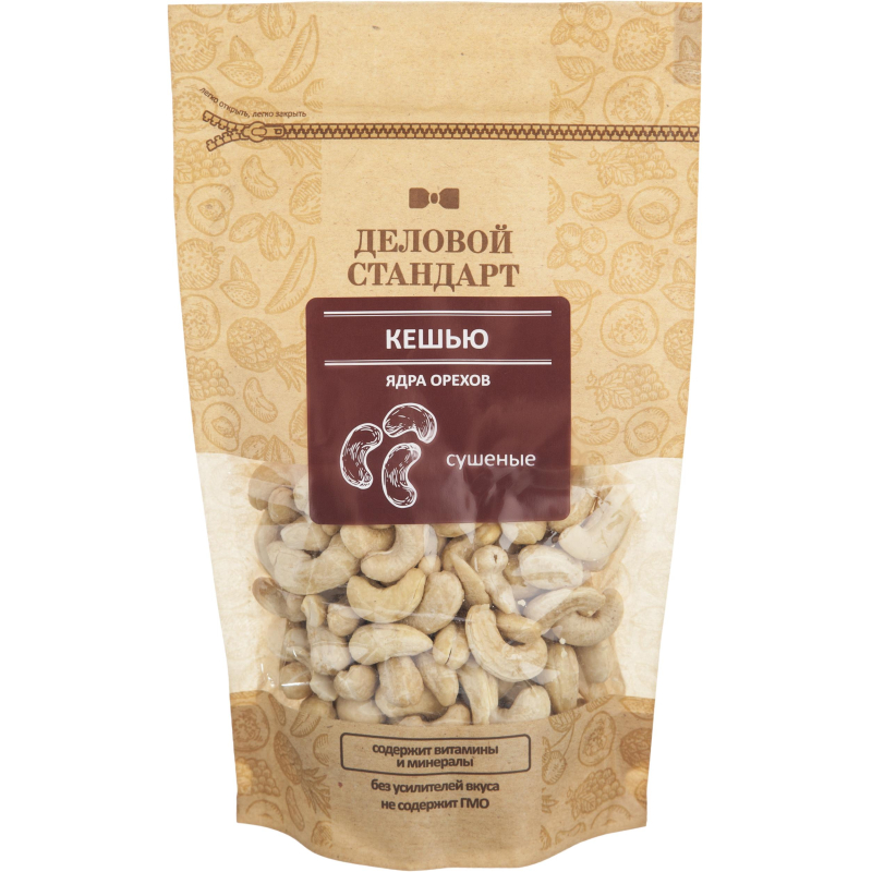Кешью сушеный 'Деловой Стандарт' очень вкусный и полезный продукт. Ядра кешью калиброванные, кремового цвета, обладают приятным ореховым вкусом со сливочными нотками. В состав кешью входят жирорастворимые витамины, водорастворимые минералы - кальций, железо, магний, фосфор, калий, натрий, цинк, медь, марганец и селен, а также ненасыщенные жирные кислоты омега-3, омега-6 и омега-9. По содержанию калия, магния и железа кешью лидируют среди других орехов. - Состав: ядра орехов кешью. - Пищевая ценность: белки - 18 г, жиры - 42 г, углеводы - 31 г. - Энергетическая ценность: 570 ккал/2380 кДж. - Срок годности: 12 месяцев. - Условия хранения: при температуре 20+5°С и относительной влажности воздуха не более 70%. - Вес: 200 г. - Страна производства: Россия. Возможно присутствие в незначительном количестве частиц других орехов, арахиса, кунжута, глютена и продуктов переработки молока.