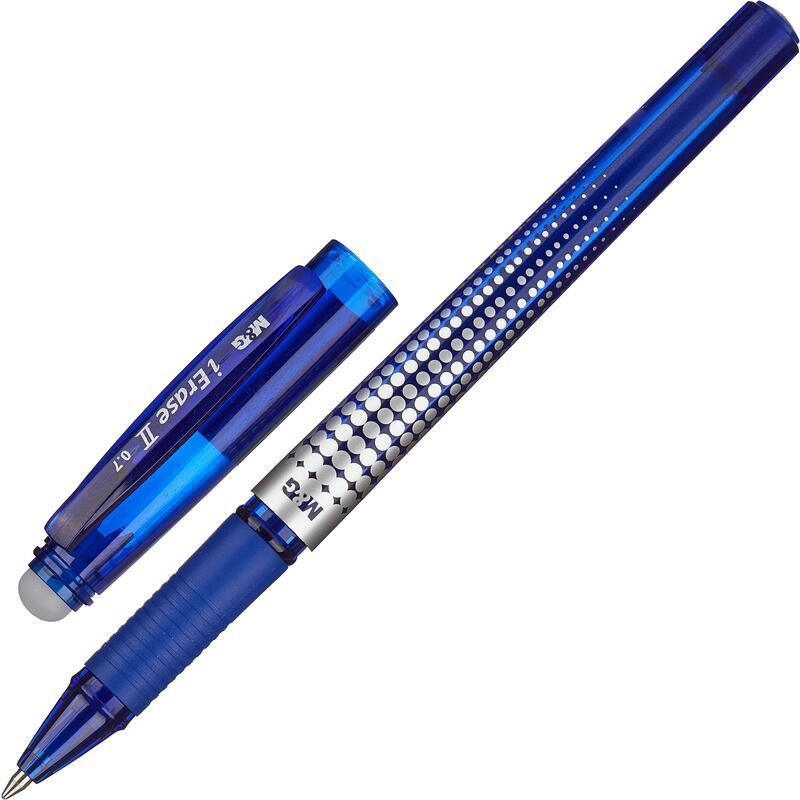 Ручка гелевая M&G iErase II обладает уникальными обесцвечивающимися термо-чернилами. Для удаления надписи необходимо потереть ее специальным ластиком, встроенным в колпачок ручки. При письме и стирании ручка не повреждает структуру бумаги, делая исправления незаметными. Ручка не рекомендована для использования в деловых документах. Рифленая резиновая манжетка обеспечивает удобный захват ручки и комфорт во время письма. Диаметр шарика - 0,7 мм. Толщина линии письма - 0,5 мм. Цвет чернил - синий.