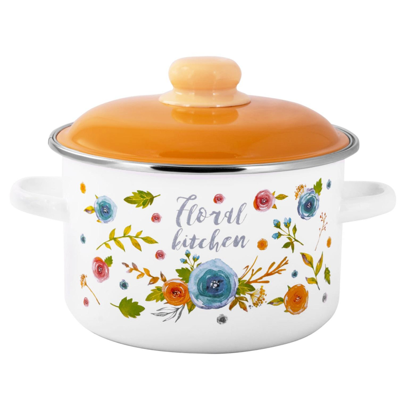 Кастрюля Appetite Floral kitchen 2 л эмалированная сталь с крышкой. Эмалированная кастрюля емкостью 2 литра Appetite серии Floral kitchen. Посуда очень экологична, не вступает в реакцию с пищевыми кислотами и щелочами, тем самым сохраняется вкус пищи, в нее не попадают вредные для здоровья человека соединения. В кастрюле можно не только готовить, но и безопасно хранить пищу. Кастрюля отличается высоким качеством, гладкая не пористая поверхность посуды обеспечивает простой и легкий уход. Изделие подходит для всех видов плит: индукционных, газовых, электрических, стеклокерамических. Можно мыть в посудомоечной машине.