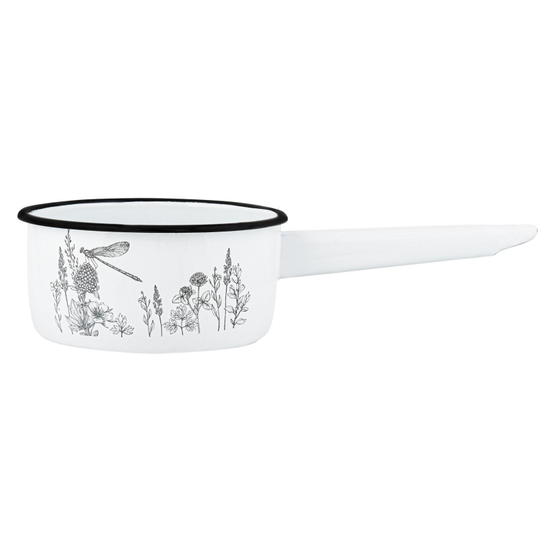 Ковш Appetite Flora-2 1 л эмалированная сталь. Ковш эмалированный Flora-2 объемом 1 л. Пища не вступает в контакт с металлом, поэтому приготовленная еда будет не только вкусной, но и полезной. Ручка также выполнена из эмалированной стали. Подходит для всех типов плит: индукционных, газовых, электрических, стеклокерамических. Эмалированную посуду легко мыть, в том числе в посудомоечной машине. Диаметр: 15 см. Высота борта: 80 мм. Толщина стенок: 0.8 мм. Толщина дна: 0.5 мм. Вес: 0.452 кг. Товар поставляется без индивидуальной упаковки.