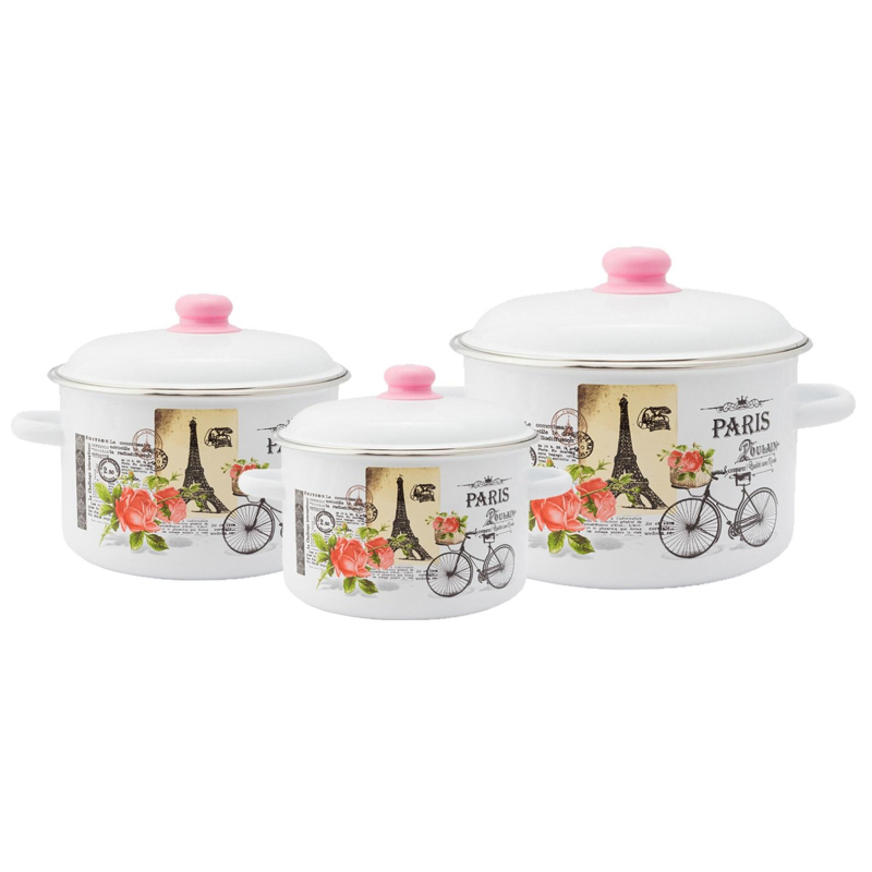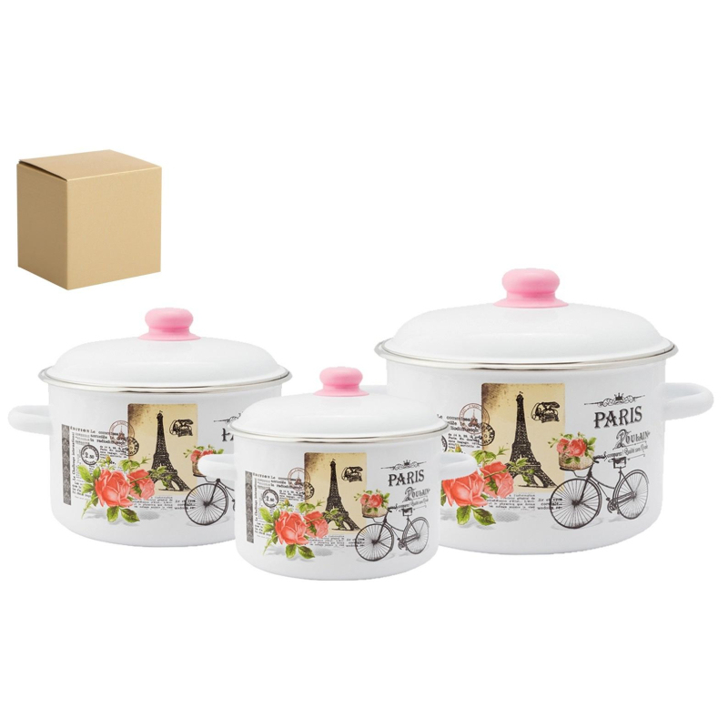 Набор кастрюль Appetite Париж 1KB191M эмалированная сталь 3 штуки (2 л, 3 л, 5.5 л). Представленный набор Париж состоит из трех кастрюль с крышками, объем которых составляет 2, 3 и 5.5 литров. Все кастрюли комплектуются крышками с удобными ручками. Кастрюли выполнены из высококачественной стали с эмалированным покрытием. Кастрюли допускается мыть в посудомоечной машине. Подходят для всех типов плит, в том числе и для индукционных.