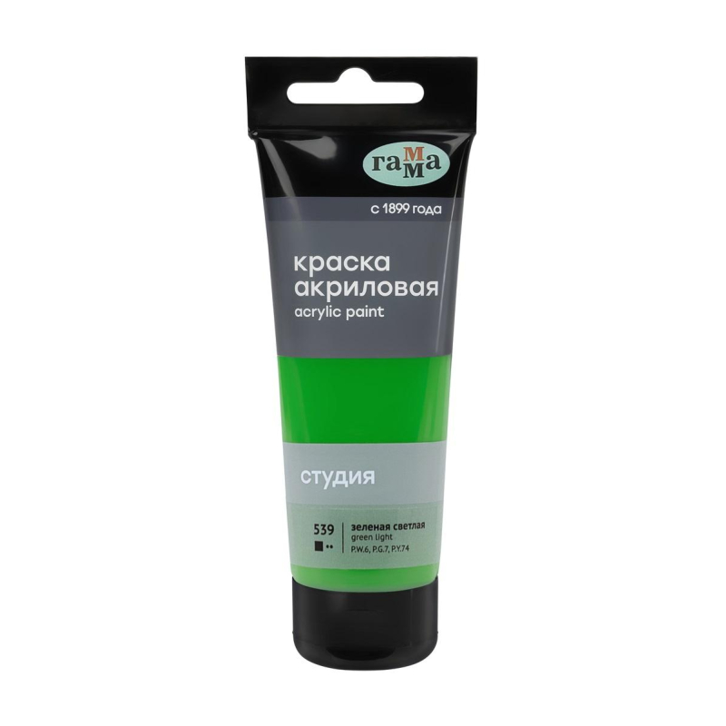 Новая акриловая краска серии "Студия" зеленого светлого цвета предназначена для художественно-живописных и декоративно-прикладных работ. Главные отличия: насыщенный цвет, густая консистенция, высокая адгезия, прочность красочного слоя. После высыхания краска становится глянцевой, практически не темнеет, специальная добавка позволяет максимально раскрыть красоту цвета. Художественный акрил прекрасно разносится, подходит для бумаги, картона, грунтованного холста, дерева, стекла, кожи, ткани. Время высыхания: от 10 минут до 1 часа в зависимости от толщины слоя. Прозрачный корпус тубы позволяет увидеть цвет краски, а удобная крышка флип-топ предотвращает высыхание. Объем тубы - 75 мл.