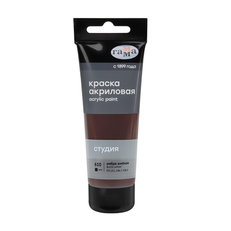 Новая акриловая краска "Студия" цвета жженая умбра предназначена для художественно-живописных и декоративно-прикладных работ. Главные отличия: насыщенный цвет, густая консистенция, высокая адгезия, прочность красочного слоя. После высыхания краска становится глянцевой, практически не темнеет, специальная добавка позволяет максимально раскрыть красоту цвета. Художественный акрил прекрасно разносится, подходит для бумаги, картона, грунтованного холста, дерева, стекла, кожи, ткани. Время высыхания: от 10 минут до 1 часа в зависимости от толщины слоя. Прозрачный корпус тубы позволяет увидеть цвет краски, а удобная крышка флип-топ предотвращает высыхание. Объем тубы - 75 мл.