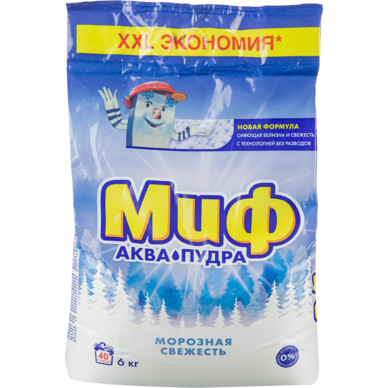 Стиральный порошок Миф Аквапудра Морозная Свежесть для белого белья Стиральный порошок Миф Аквапудра Морозная Свежесть для белых и светлых тканей - это новая, лучшая формула Миф для сияющей белизны, с технологией против разводов. Благодаря новой уникальной технологии Аквапудра, порошок для стирки Миф Аквапудра растворяется едва коснувшись воды, и моментально активируется: удаляет даже трудновыводимые пятна и придает одежде сияющую белизну, глубоко проникая в структуру волокон ткани. С помощью технологии против разводов, Миф помогает эффективно справляться с загрязнениями, не оставляя разводов на одежде и следов порошка даже в области швов. Только чистота и морозная свежесть!