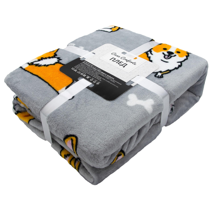 Плед Casa Conforte Festival Корги 6154737 микрофибра 150x200 см разноцветный. Корги - милые смешные собачки на светло -сером фоне, универсальный подарок для любого возраста. Плед с дизайнерским принтом станет оригинальным решением в интерьере и отлично подойдет как для покупки домой, так и для подарка на любой праздник. Плед серии Festival не деформируется и не скатывается, его легко стирать и не придется долго ждать пока высохнет. Также микрофибра, из которой он изготовлен, является гипоаллергенным материалом. А значит плед можно покупать в том числе в те дома, где есть маленькие дети. Размер изделия: 150x200 см. Состав такни: 100% полиэстер. Плотность ткани: 200 г/кв.м.