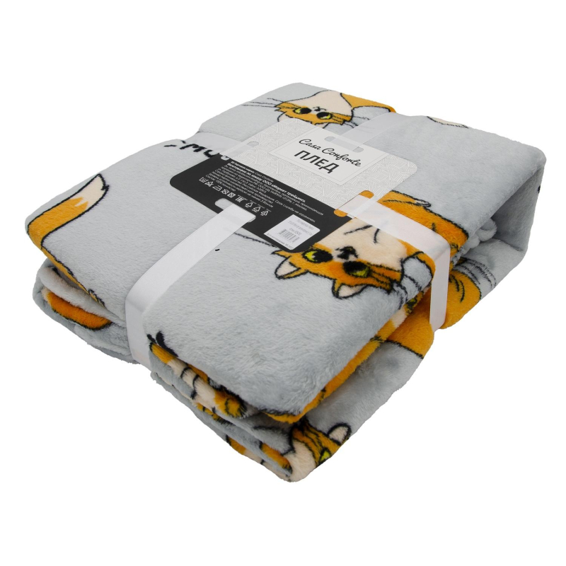 Плед из мягкой микрофибры коллекции Red cat. Принт с рыжими котами не оставит равнодушным ни одного любителя кошек. А еще рыжий кот приносит счастье в дом. Плед уложен "книжкой" и перетянут красиво этикеткой. Цвет: светло-серый.