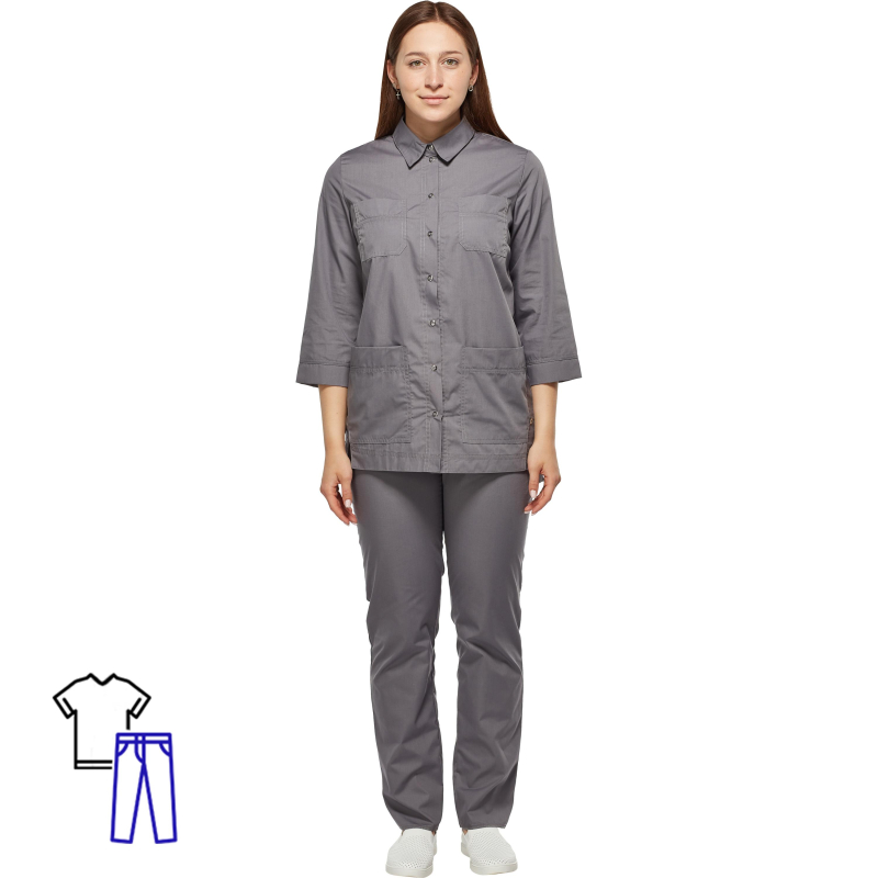Костюм для горничных и уборщиц женский Элько модели У26-КБР выполнен в сером цвете. Размер 54, рост 158-170. Для медперсонала, для бьюти-мастеров, для грумеров, для ветеринаров, для парикмахеров Состав ткани костюма 35% хлопок, 65% полиэстер. Мягкая тонкая ткань с шелковистым эффектом. Плотность ткани 115-120 гр./м2. Костюм состоит из рубашки и брюк. Приоритетный рост до 173 см. Костюмы с классическими брюками (без резинки на щиколотке) имеют небольшой запас по длине в 2-3 см. ВАЖНО: халаты с длинным рукавом рассчитаны на рост до 170 см., в ряде случаев (в зависимости от индивидуальной антропометрии) длины рукава может не хватить и для покупателя ростом 170 см. Разтежка на костюме выполнена в виде кнопок. Длина рукова - 3/4. Медицинская одежда Элько - это гарантия соответствия сорта ткани заявленным параметрам, одна из лучших посадок, новые модели собственной разработки. Помимо этого, процесс производства включает глажку, что улучшает качество швов и обеспечивает дополнительную сан. обработку сырья. Мы располагаем собственным производством и гарантируем, что все изделия произведены в чистых помещениях, а сотрудники здоровы (на ткани не будет вирусов и бактерий). Данную модель необходимо стирать при 40 градусах, не отбеливать, не сушить в барабане, гладить при температуре до 110 градусов, допускается химическая и сухая чистка на основе перхлорэтилена.. Предназначен костюм от общих производственных загрязнений. Соответсвует стандартам ГОСТ 12.4.280-2014.