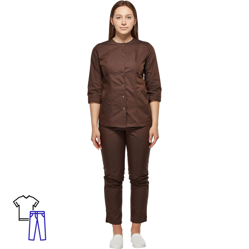 Костюм для горничных и уборщиц женский Элько модели У26-КБР выполнен в коричневом цвете. Размер 52, рост 158-170. Для медперсонала, для бьюти-мастеров, для грумеров, для ветеринаров, для парикмахеров Состав ткани костюма 35% хлопок, 65% полиэстер. Мягкая тонкая ткань с шелковистым эффектом. Плотность ткани 115-120 гр./м2. Костюм состоит из рубашки и брюк. Приоритетный рост до 173 см. Костюмы с классическими брюками (без резинки на щиколотке) имеют небольшой запас по длине в 2-3 см. ВАЖНО: халаты с длинным рукавом рассчитаны на рост до 170 см., в ряде случаев (в зависимости от индивидуальной антропометрии) длины рукава может не хватить и для покупателя ростом 170 см. Разтежка на костюме выполнена в виде кнопок. Длина рукова - 3/4. Медицинская одежда Элько - это гарантия соответствия сорта ткани заявленным параметрам, одна из лучших посадок, новые модели собственной разработки. Помимо этого, процесс производства включает глажку, что улучшает качество швов и обеспечивает дополнительную сан. обработку сырья. Мы располагаем собственным производством и гарантируем, что все изделия произведены в чистых помещениях, а сотрудники здоровы (на ткани не будет вирусов и бактерий). Данную модель необходимо стирать при 40 градусах, не отбеливать, не сушить в барабане, гладить при температуре до 110 градусов, допускается химическая и сухая чистка на основе перхлорэтилена.. Предназначен костюм от общих производственных загрязнений. Соответсвует стандартам ГОСТ 12.4.280-2014.