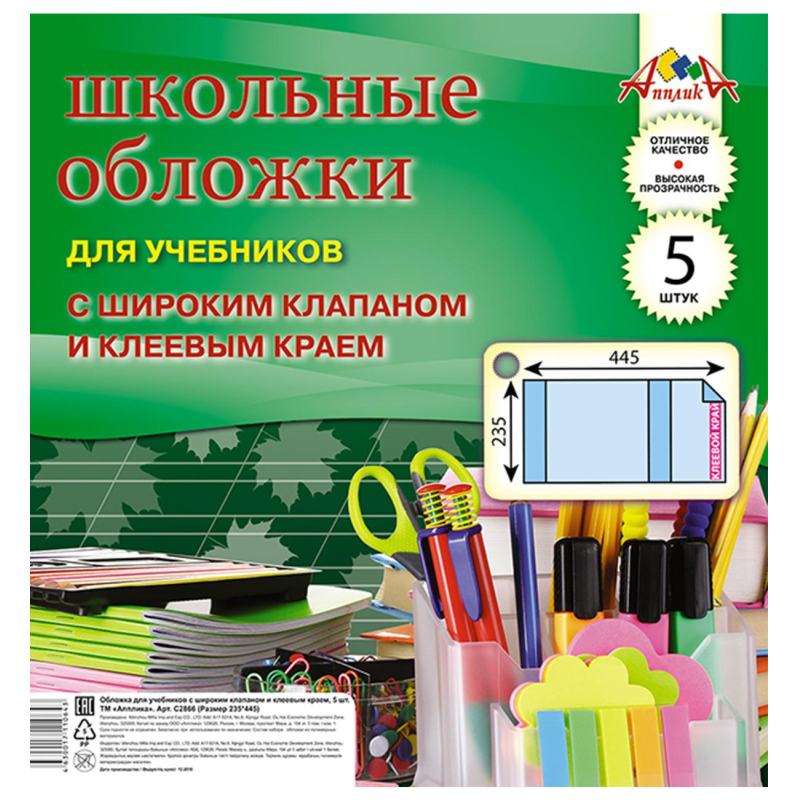 Набор обложек д/учеб. шир клапан, клеев. Край, 5 шт (235х445), ПВХ 110 мкм