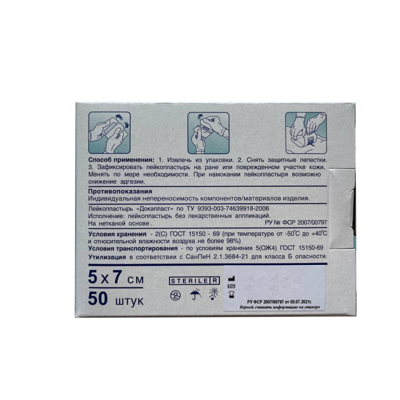 Пластырь-повязка Докапласт, 5х7см, №50, 50шт/уп