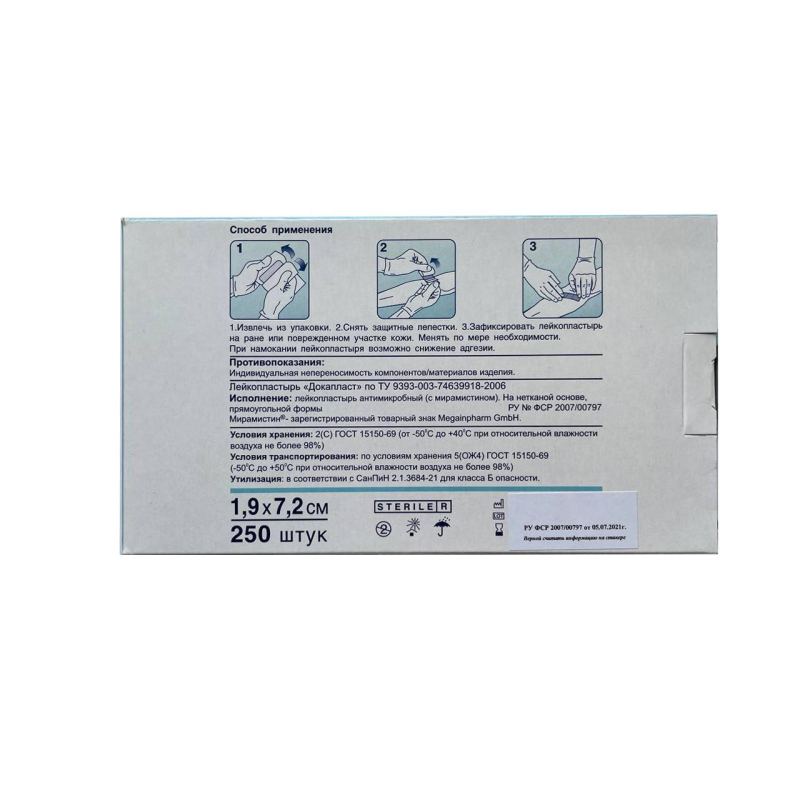 Перевяз. ср-ва Лейкопластырь бакт,1,9х7,2см Докапласт мирамистин, 250шт/уп