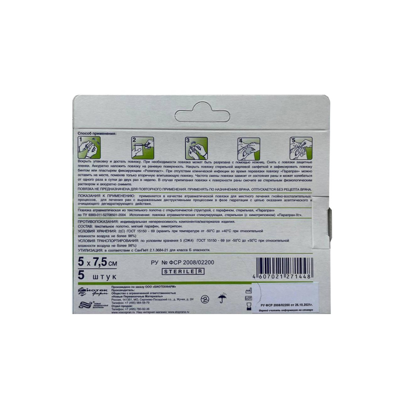 Повязка Парапран Химотрипсин, 5х7,5см, №5, 5шт/уп