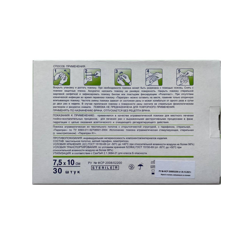 Повязка Парапран Химотрипсин, 7,5х10см, №30, 30шт/уп