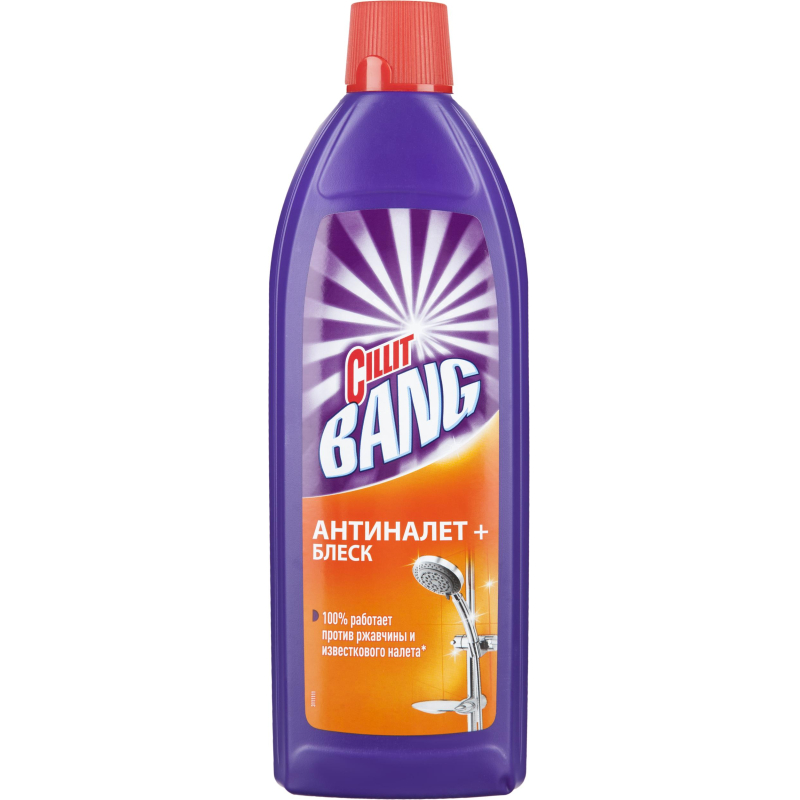 Средство для сантехники Cillit Bang Антиналет+Блеск 750 мл Назначение. Мощное средство от налета и грязи устраняет даже самые стойкие загрязнения. Формула Cillit Bang от налета и грязи легко удаляет известковый налет, мыльные разводы, въевшуюся грязь и ржавчину во всем доме. Эффективен при уборке следующих поверхностей: раковина, туалет, душевая кабина, ванна, кафель, акрид, кран, хромированные и эмалированные поверхности, нержавеющая сталь и керамика, пластмасса. Состав. Менее 5% неиногенные ПАВ, щавелевая кислота, отдушка. Условия хранения: Хранить в местах, недоступных для детей. Меры предосторожности. Может вызвать раздражение глаз и кожи. Избегайте попадания в глаза. В случае попадания в глаза немедленно промойте их большим количеством воды и обратитесь к врачу. В случае проглатыания немедленно обратитесь к врачу и покажите упаковку. не вдыхать пары. Используйте в хорошо проветриваемых помещениях. Не смешивайте с отбеливателями и другими чистящими средствами. Средство и контейнер должны быть утилизированы безопасным образом. Условия хранения. Хранить в недоступном для детей месте. Способ применения. Открутите крышку, надавив на метки с двух сторон. Перед использованием попробуйте средство на менее заметном участке. 1. Нанесите на загрязнение и через 1 минуту потрите губкой или тряпкой. 2. Тщательно смойте водой и протрите влажной тряпкой. 3. При необходимости повторите процедуру. Внимание: Не оставляйте средство на поверхности более чем на 1 минуту. Сполосните поверхность водой перед применением. Если средство попало на одежду, вытрите и немедленно смойте водой. Держите бутылку вертикально. Если средство попало на кожу, немедленно смойте водой. Если у Вас чувствительная кожа, используйте перчатки. Не используйте на горячих или поврежденных поверхностях, поверхностях чувствительных к кислотам, мраморе, меди, алюминии, глянцевой гарнитуре, линолему, ткани, коврах, натуральном камне, оцинкованном металле, резине, лакированных, покрытых воском или крашенных полах, вытравленнном или матированном стекле. Срок годности. 24 месяца