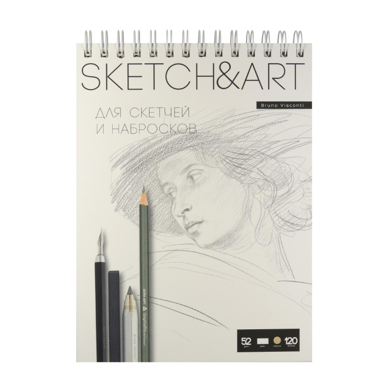 Скетчбук Sketch&Art - хорошее предложение как для профессионалов, так и для любителей рисования, а также для всех тех, кто предпочитает качество по оптимальной цене. Удобный формат (185х250 мм) позволяет иметь скетчбук всегда под рукой, а жесткая подложка - делать зарисовки и наброски на весу. Внутренний блок из 120 листов гладкой бумаги плотностью 52 г/кв.м - идеально для скетчей и набросков. Листы скреплены спиралью по верхнему краю, что позволяет переворачивать их на 180 градусов. Скетчбук приятно держать в руках благодаря бархатистому покрытию Soft Tоuch, а лаконичный, но узнаваемый дизайн серии привлекает к себе внимание.