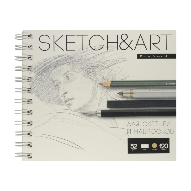 Скетчбук Sketch&Art - хорошее предложение как для профессионалов, так и для любителей рисования, а также для всех тех, кто предпочитает качество по оптимальной цене. Удобный формат (185х155 мм) позволяет иметь скетчбук всегда под рукой, а жесткая подложка - делать зарисовки и наброски на весу. Внутренний блок из 120 листов гладкой бумаги плотностью 52 г/кв.м - идеально для скетчей и набросков. Листы скреплены спиралью сбоку, что позволяет переворачивать их на 180 градусов. Скетчбук приятно держать в руках благодаря бархатистому покрытию Soft Tоuch, а лаконичный, но узнаваемый дизайн серии привлекает к себе внимание.