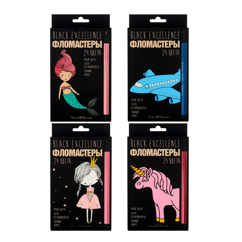 Фломастеры Black Excellence наб. 24 цв. 4 вида, 32-0057