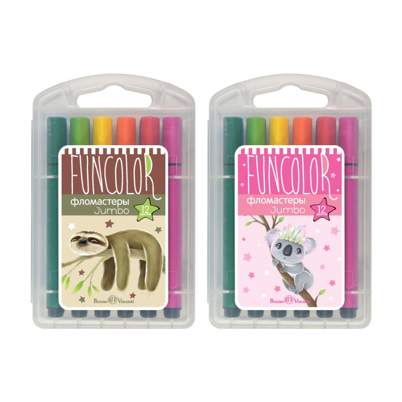 Фломастеры утолщенные Funcolor jumbo, наб. 12 цв.в пенале 2 вида, 32-0041