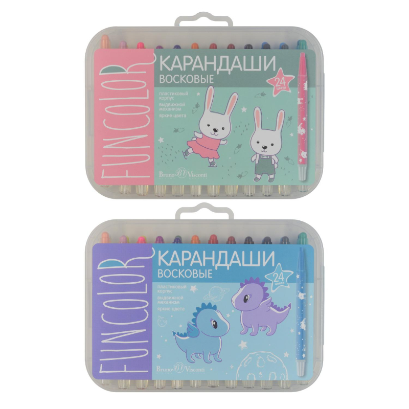Карандаши восковые мелки в пласт.корпусе Funcolor,наб.24 цв.2 вида,31-0016