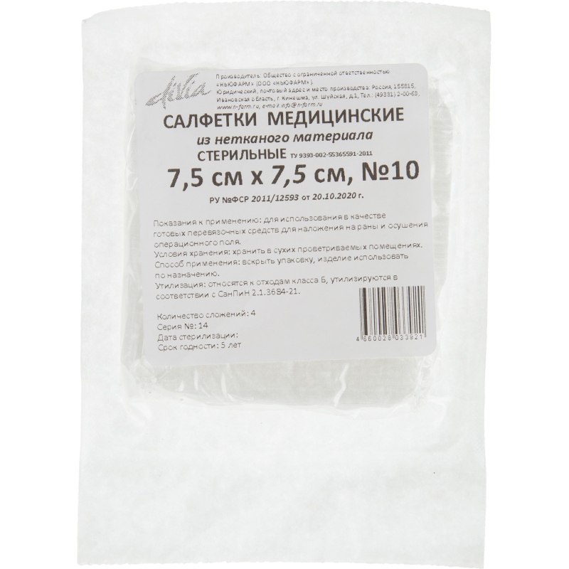 Салфетки нетканые, стер, 7,5х7,5см, №10, пл.40, 4 слож., 10шт/уп ШК33921