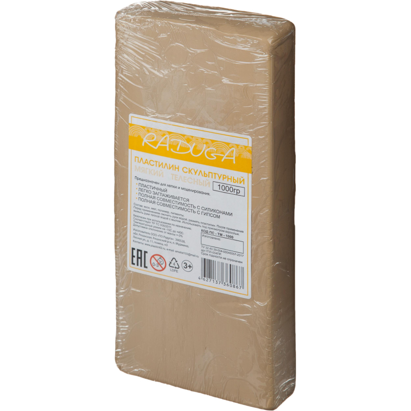 Пластилин скульптурный ТЕЛЕСНЫЙ МЯГКИЙ, 1000 г