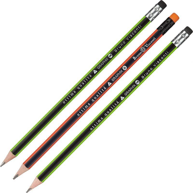 Набор чернографитных карандашей Graphix 2В/В/НВ с ластиком 3шт 21-0008-3