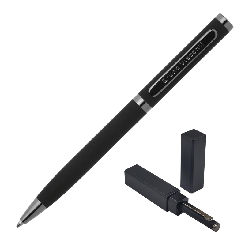 Ручка авт. BV FIRENZE 1мм синяя корп черный,тубус прямоуг черный 20-0298/03