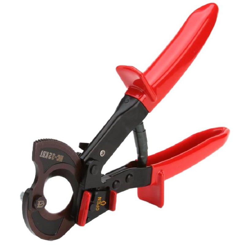 Ножницы секторные КВТ НС-32.Диапазон резки: кабели с ленточной броней ? до 32 мм; Специальная термообработка лезвий; Твердость лезвий HRC 48...52; Усовершенствованная конструкция; Надежный храповой механизм; Возможность работы одной рукой; Функция разблокировки лезвий из любого положения; Блокиратор рукояток; Не предназначены для резки стальных тросов; Вес: 600 г; Длина: 250 мм.