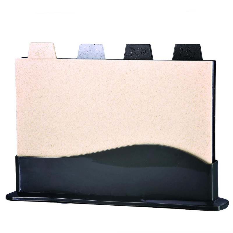 Набор разделочных досок Mayer&Boch состоит из четырех разноцветных досок, размещенных в оригинальной подставке, что делает набор не только многофункциональным, но и очень удобным для хранения на кухне. Цветные разделочные доски выполнены из прочного пищевого пластика и могут использоваться для нарезки сырого мяса и рыбы, овощей, фруктов, вареных и копченых продуктов, хлеба и т.д. Небольшой выступающий ярлычок, имеющийся на каждой из досок, позволяет с легкостью извлекать их из подставки, а также служит удобной ручкой, за которую можно придерживать доску в процессе мытья. Каждый ярлычок отмечен рисунком продуктов, для которых предназначена доска: для рыбы, для мяса, для овощей и фруктов. Размер досок на подставке: 33.5x7x23.5 см. Набор разделочных досок станет незаменимым и полезным аксессуаром на вашей кухне, который к тому же и стильно дополнит кухонный интерьер. Подходит для мытья в посудомоечной машине.