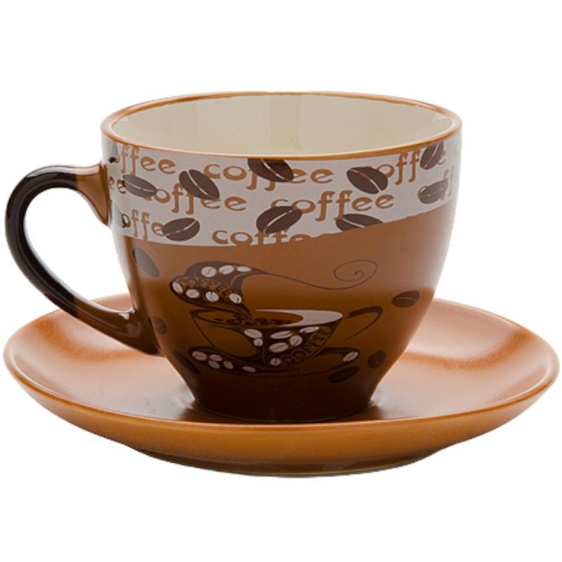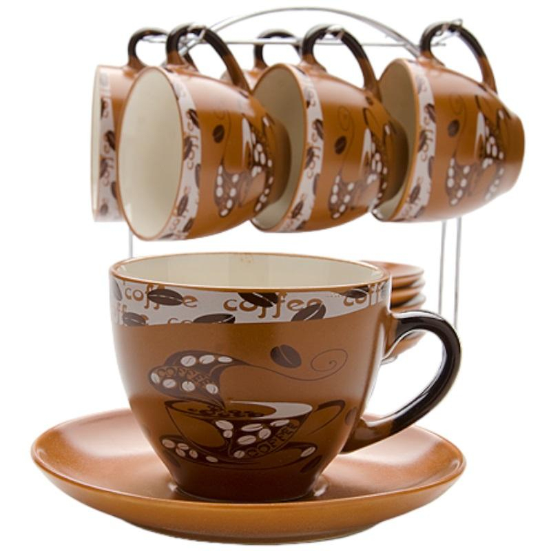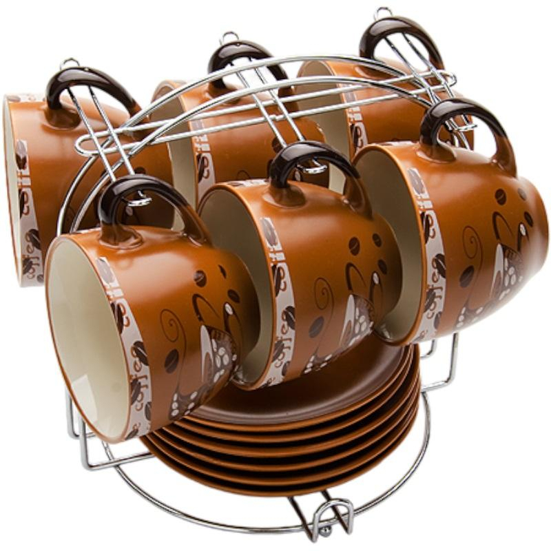 Сервиз чайный Loraine (23540) на 6 персон керамика (6 чашек 220 мл, 6 блюдец 14 см, подставка). Чайный набор состоит из 6 чашек объемом 220 мл, 6 блюдец размером 14х14 см и металлической подставки. Предметы набора изготовлены из высококачественной керамики в коричневых тонах и оформлены стильным рисунком Кофе. Элегантный дизайн придется по вкусу и ценителям классики, и тем, кто предпочитает утонченность и изысканность. Он настроит на позитивный лад и подарит хорошее настроение с самого утра. Чайный набор идеально подойдет для сервировки стола и станет отличным подарком к любому празднику. Изделия можно компактно хранить на подставке, входящей в набор. Подходит для мытья в посудомоечной машине и использования в СВЧ-печи.