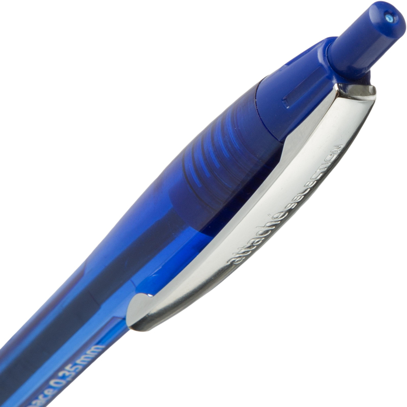 Автоматическая шариковая ручка Attache Selection Ultra Space в тонированном корпусе с антибактериальной манжеткой. Ручка, созданная по революционным технологиям с использованием материалов высшего качества, обеспечивает мягкое и качественное письмо за счет использования чернил серии Glide низкой вязкости на масляной основе. Пишущий узел ручки оставляет тонкую и четкую линию толщиной 0,3 мм, не царапает бумагу. Чернила устойчивы к выгоранию и размытию водой, не замерзают при низкой температуре (до -18 градусов). Высокое качество письма без помарок и инновационный дизайн великолепно сочетаются в этой ручке. За счет особого расположения шарика пишущего узла ручка идеально подходит для письма как правой, так и левой рукой. Сочетание уникальных технологий производства чернил и пишущего узла позволяет писать на 20% дольше без пропусков и помарок при минимальном давлении на ручку. Длина линии письма - 700 м.