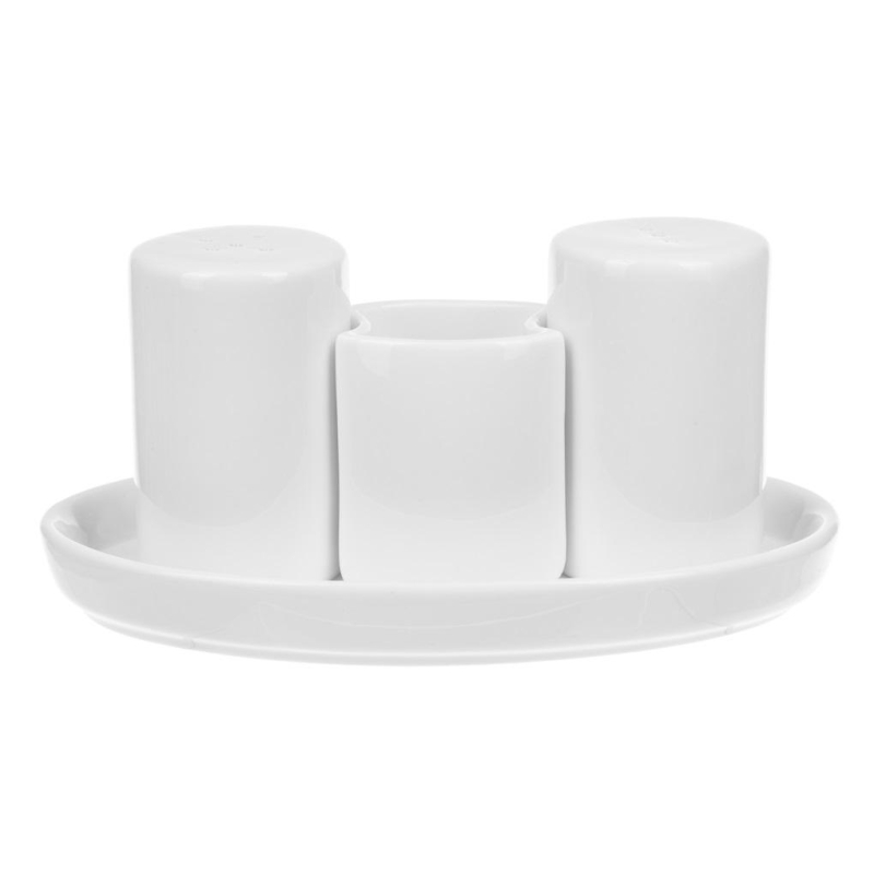 Набор для специй Chan Wave Classic 4 предмета (солонка, перечница, емкость для зубочисток, подставка). Набор для специй Chan Wave Classic выполнен из твердого фарфора приятного молочного оттенка. Такая посуда впишется в любой интерьер и Ваши блюда будут выглядеть на ней презентабельно и аппетитно, словно их приготовил шеф-повар именитого ресторана. Фарфор Chan Wave с легкостью выдерживает интенсивную эксплуатацию (его можно мыть в посудомоечной машине, использовать в СВЧ-печах). Утолщенные края препятствуют образованию сколов, а устойчивая к истиранию глазурь предотвратит появление темных полос от столовых приборов. В набор входит: солонка, перечница, емкость для зубочисток, подставка. Chan Wave Classic - уникальная серия, сочетающая эстетику и функциональность.